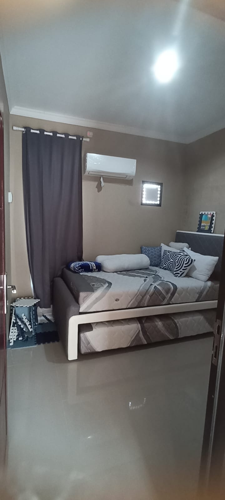 Rumah ini dibangun tahun 2021-2022 dengan ukuran luas tanah 84 m2 di lokasi tinggi alias Tidak mengalami Banjir akibat luapan sungai. Tema rumah minimalis dengan ceiling tinggi.